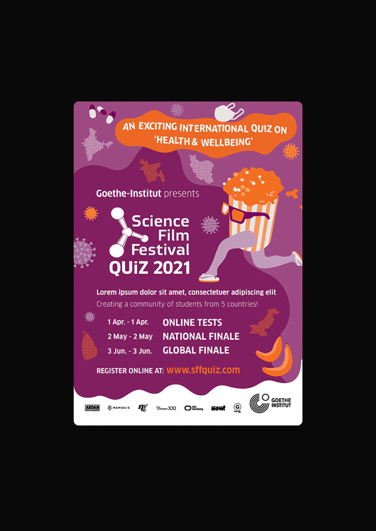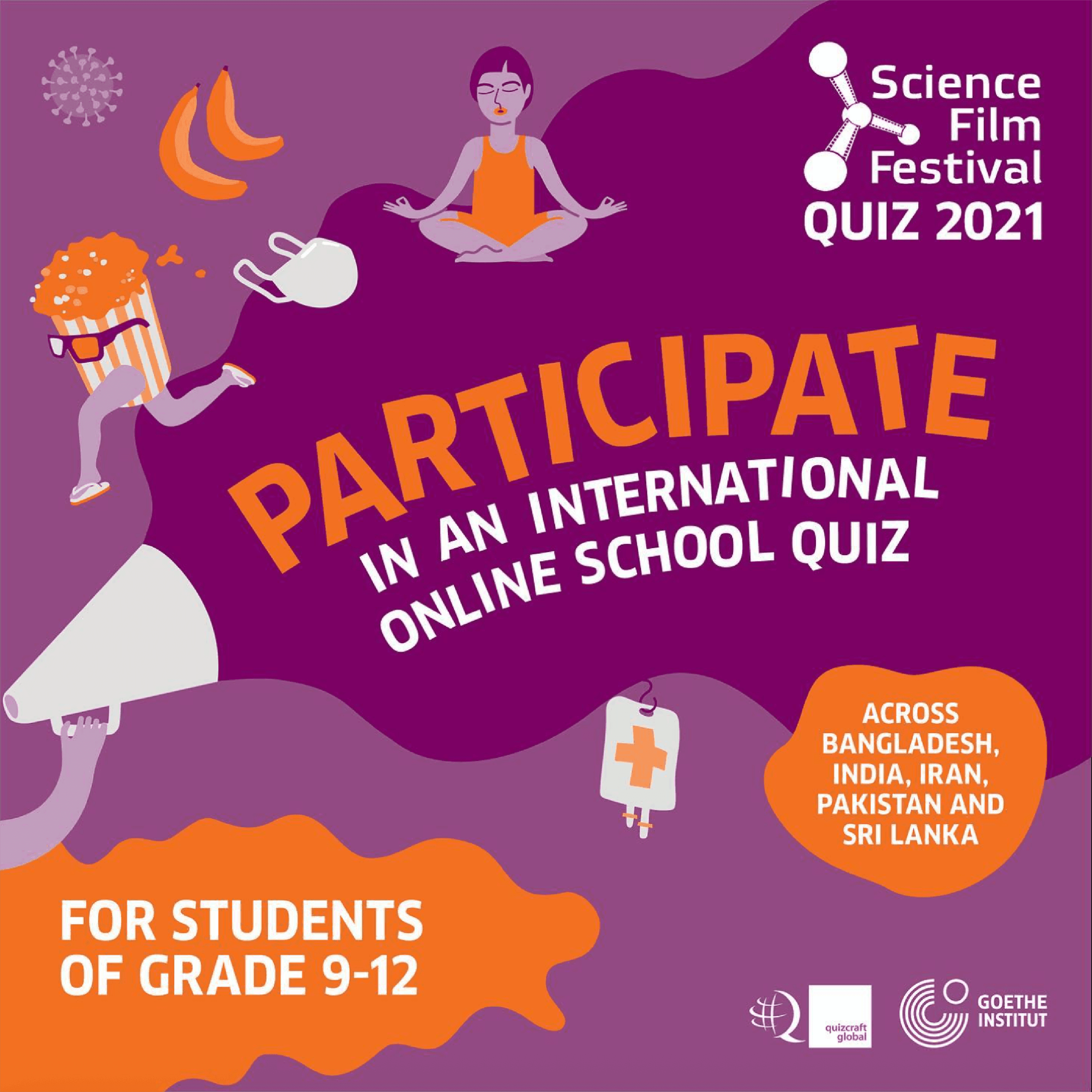I adapted the brand identity of Goethe-Institut’s Science Film Festival 2021 into a quizzing format for an international quiz hosted across India, Pakistan, Bangladesh, Sri Lanka, and Iran that was displayed to middle-school audiences through key digital touchpoints.